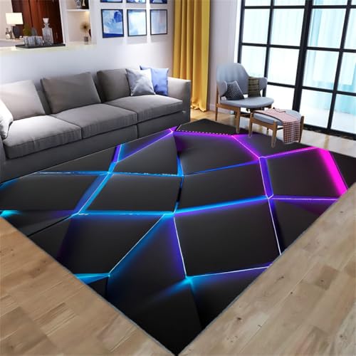Xisnuient Tapis Chambre Ado Gamer, 3D Vision Néon Lignes Impression Salon Zone Tapis Antidérapant Léger Propreté Tapis De Flanelle pour Garçons Gaming Room (Colour 3,80x120cm)