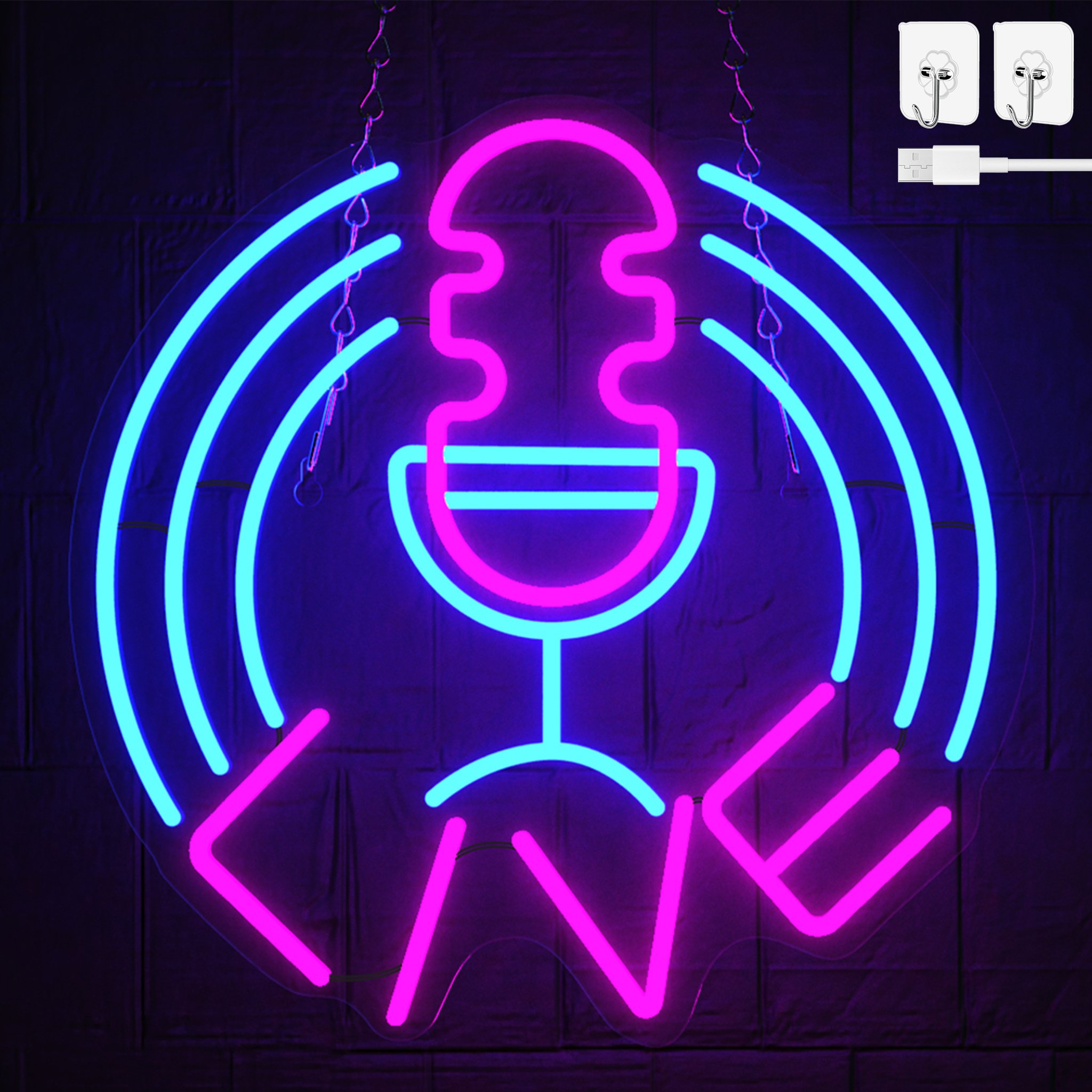 UISEBRT RGB Neon Light Shield 'LIVE' - USB Nightlight, enseigne lumineuse pour zone de jeu, Gaming Room éclairage décoratif, néon signe lampe