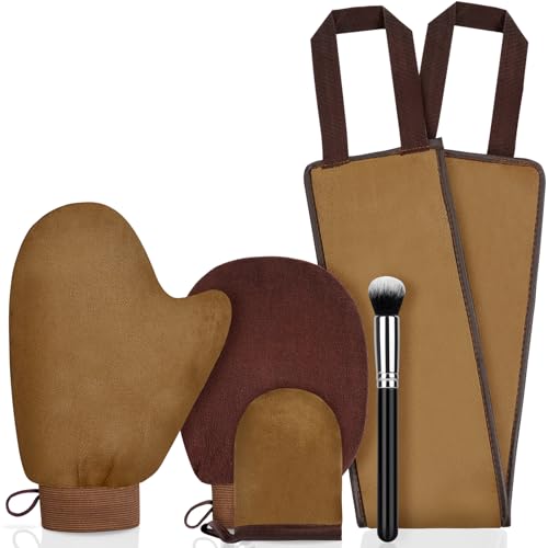 LOPHE Gant Applicateur Autobronzant, Ensemble 5 Pièces Brun Applicateur de Lotion pour Le Dos, Applicateur Sunless Tanning Mitt Applicateur Lotion Bronzante, Streak-Free Tan