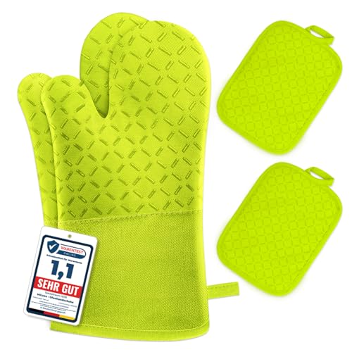 Coziselect Gants et Maniques, Gant de Cuisine Anti Chaleur et Maniques Cuisine Résistants à 260 °C, Silicone Antidérapant, Lavables en Machine, Idéal pour Cuisson, Pâtisserie et Barbecue, Vert