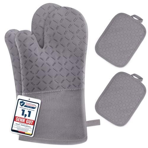 Lot de 4 Gant Four Maniques Cuisine - MILcea Gant Four Anti Chaleur Jusqu'à 300 °C, Gants en Silicone Antidérapantes, en Coton Doux, 32cm Longs et Flexibles en Gant de Cuisine, Gris