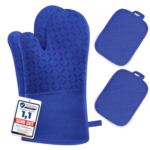 Lot de 4 Gant Four Maniques Cuisine - MILcea Gant Four Anti Chaleur Jusqu'à 300 °C, Gants en Silicone Antidérapantes, en Coton Doux, 32cm Longs et Flexibles en Gant de Cuisine, Bleu