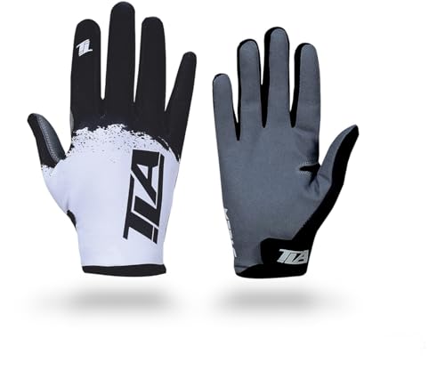 TLA STEEX Gants Motocross,Velo,VTT, Enduro, Trial, Bmx, gant moto hommes, femmes et garçons.Vêtements moto et vélo,Gants de cyclisme élastiques,légers,respirants et résistants à l'usure(Blanc/NoirXXS)
