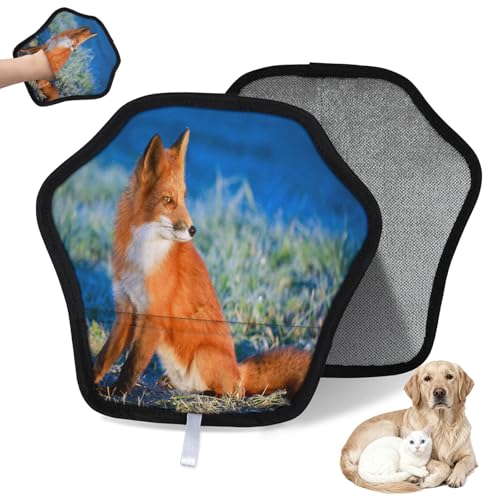 WowPrint Animal Fox Gant d'épilation d'animaux pour chat et chien - Gants électrostatiques réutilisables pour poils d'animaux domestiques - Outil de brosse pour canapé, vêtements, tapis, meubles