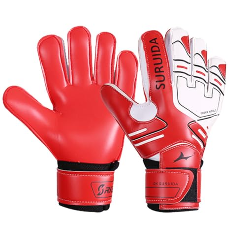 Hixingo Gants de Football Gardien Enfant, Gants de Gardien de But Antiderapant Gant de Foot Gardien Absorbant Les Chocs, Prévention pour Poignet, Doigts (10,Rouge)