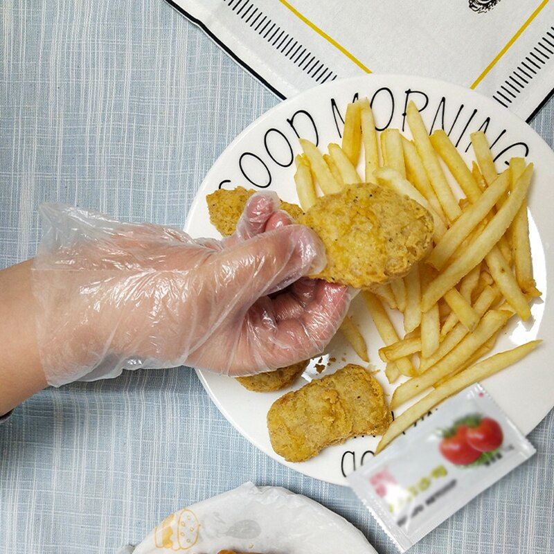 Gants en plastique aliments pour enfants | 100 pièces, gant jetable pour la cuisine de Restaurant BBQ gant alimentaire écologique gants pour fruits et légumes