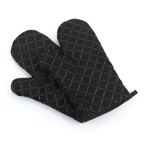 AUAUY Gant de Cuisine épais en Coton, 1 Paire Gants de Four Résistant à la Chaleur, Gant de Cuisine Antidérapant Anti Chaleur pour Cuisiner, Barbecue, Cuisson (Noir)