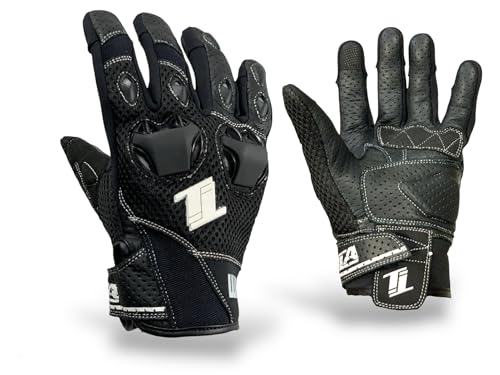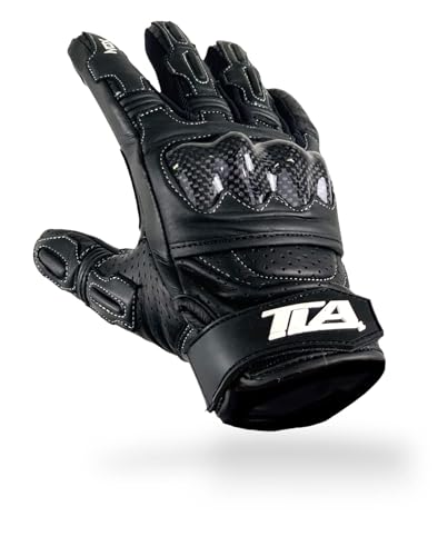 TLA WIK Gants moto en cuir et tissu avec protections homologué CE,poignet court, hommes et femmes.Gant moto, scooter,café racer,tactiles,mi-saison, respirants, haute protection contre les chocs.Noir_M