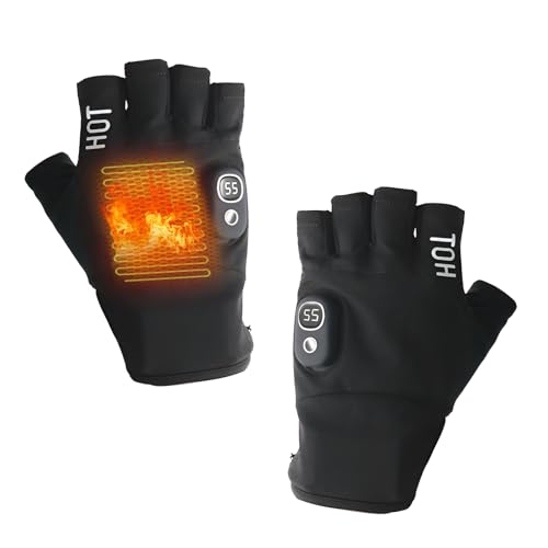 SWTHM Gants Chauffants Demi-Doigts, 3 Niveaux de Chaleur Réglables, Mitaines Avec Batterie 2000 mAh, Étanches IPX3 Pour l'Hiver et le Travail