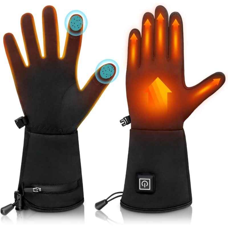 Gants chauffants pour homme et femme, Gants de ski rechargeables, Écran tactile Lychee, Réchauffement instantané, Réchauffe-mains, Imperméables, avec batterie 7.4V, 3000mAh*2 pour moto-ski (XL)