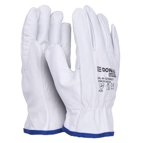 DONAU SAFETY Gants de travail en cuir de vachette de qualité supérieure - 1 paire - Taille 11 - XXL - Blanc - Avec poignet élastique - Gants de montage - Gants de protection pour conducteur