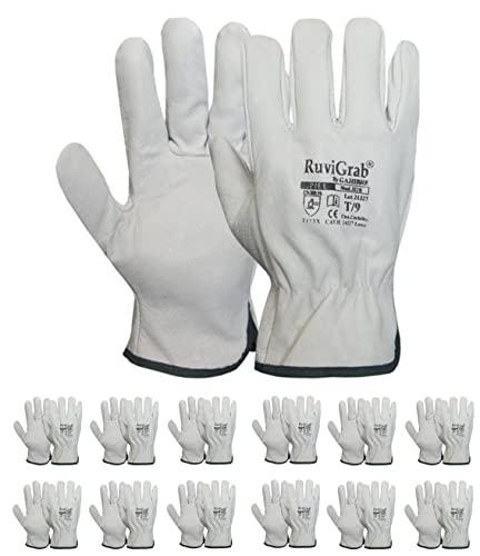 Ruvigrab Lot de 12 paires de gants de travail en cuir de fleur naturelle, gants de jardinage, gants en cuir, gants de travail