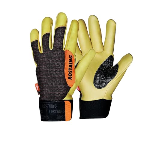 ROSTAING Gants FOREST - Paire de Gants de Protection Pro - Pour les Gros Travaux de Jardinage et la Coupe du Bois - Gants de travail en Cuir – Gants idéals pour les Bûcherons, M