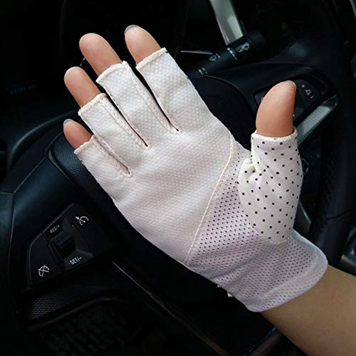 Femme Gants Demi-Doigts Coton Eté Gants de Conduite Cyclisme Antidérapant Respirant Anti-UV Protection Solaire pour Moto Vélo Scooter VTT Equitation Travail
