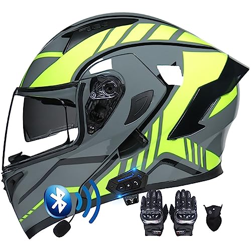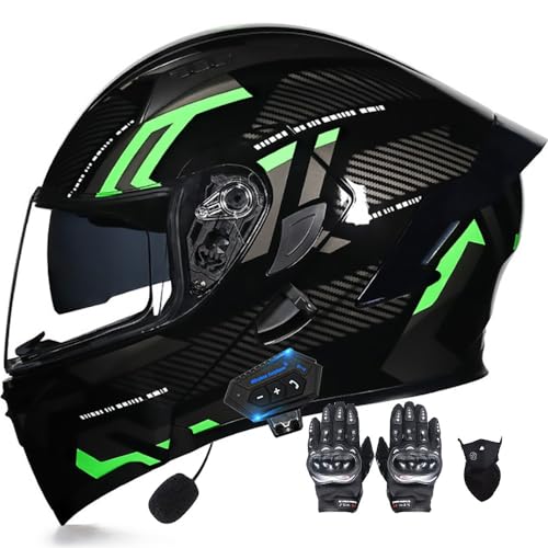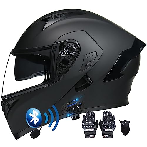 Letetexi Casques Moto Modulable avec Anti-buée Double Visière Casque Scooter Racing avec Gants et Masque Casque Motocross Intégraux Homologué ECE Bluetooth Homme Femme S~XXL