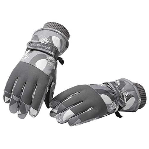 Gants Ski Femme d'Hiver Chaud Tactile Impermeable Gants de Ski Thermique Antidérapants Polaire Gloves Hiver Neige d'Extérieur Sport Snowboard Cyclisme Moto Velo Scooter Running Randonnée, Gris T