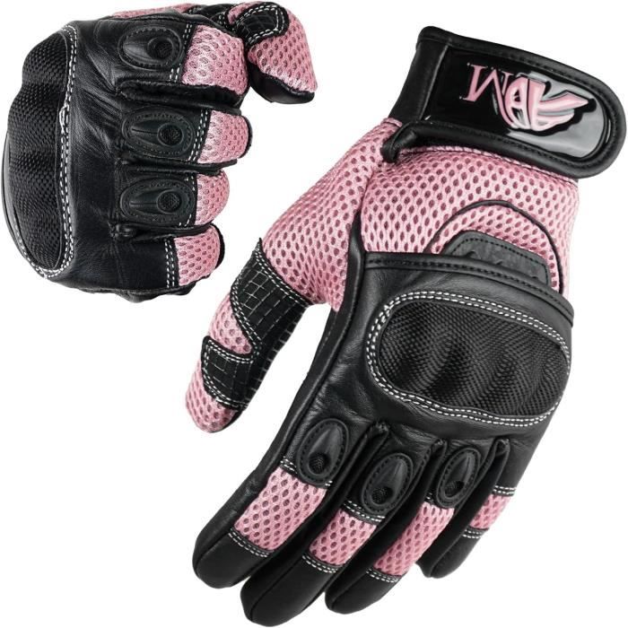 ADM Gants Moto Femme Homologués CE Cuir Été Hiver Mi-Saison Gants Scooter Femme CE Noir & Rose Tactiles Souples Respirants Taille XS S M L (Réf. 9001 LDY)