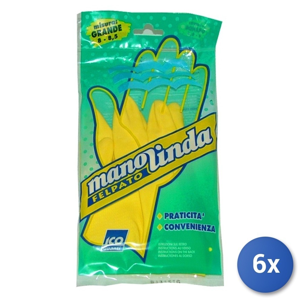 6X Manolinda Gants Pour Vaisselle Doublés L