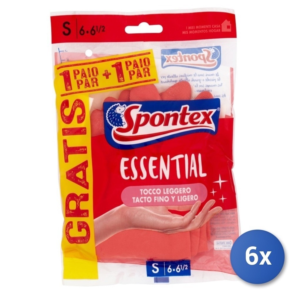 6X Essentiels Gants Pour Vaisselle Douillets S 2 Paires Spontex