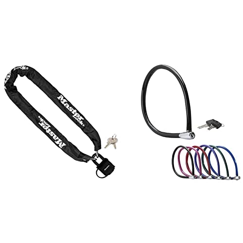 MASTER LOCK Chaîne Antivol Vélo avec Cadenas à Clé 8390EURDPRO - Idéal pour les Vélos, Vélos Electriques, VTT et autres, Mixte adulte, Noir, 90 cm & Cable Antivol Vélo [55 cm Câble] [Extérieur]8630-F