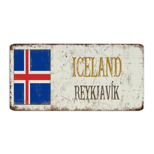 Iceland-Reykjavík Plaque en métal personnalisée - Plaque de clôture rustique, souvenir de pays national, décoration murale de route, panneau de garage pour jardin, cour, garage - 15,2 x 30,5 cm