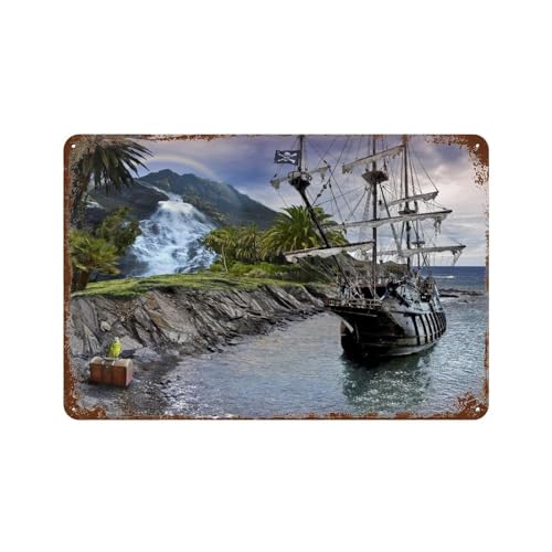 PGCKSK Plaque en métal vintage,Paysage minable de bateau pirate au bord de la mer,garage, grotte de jardin, décoration murale pour maison, cuisine, bar, club-20 x 30 cm (8 x 12 inch) K64