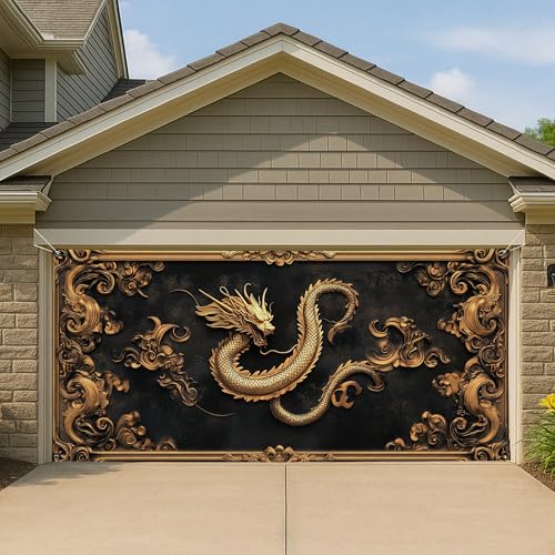 Housse de porte de garage motif dragon oriental, tourbillon doré majestueux, grandes décorations de porte de garage, décoration d'intérieur fantaisie extérieure, 397 x 180 cm