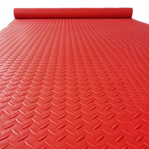 Tapis en Caoutchouc, Tapis de Sol de Garage, Tapis en PVC à Plaque diamantée, Rouleau de revêtement de Sol pour Parking, revêtement en Caoutchouc antidérapant, Tapis imperméable,Rouge,1x2m