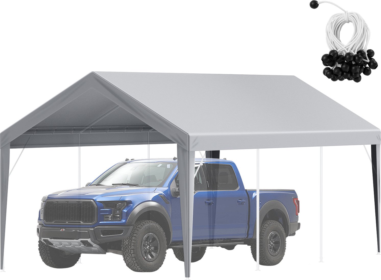 SucceBuy Abri de remplacement pour voiture, 10' x 20', toile de tente de garage résistante, étanche et protégée contre les UV, installation facile avec des sangles, gris (couverture supérieure uniquement, cadre non fourni)