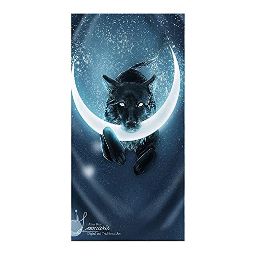 PEIHUODAN Serviette De Plage Grande Taille Homme Ado Garcon XXL Microfibre Serviette De Bain Personnalisée Adulte 3D Loup Lion Motif Noir Bleu Serviette Couverture Spa Nager Sport (80x160 cm,Noir)
