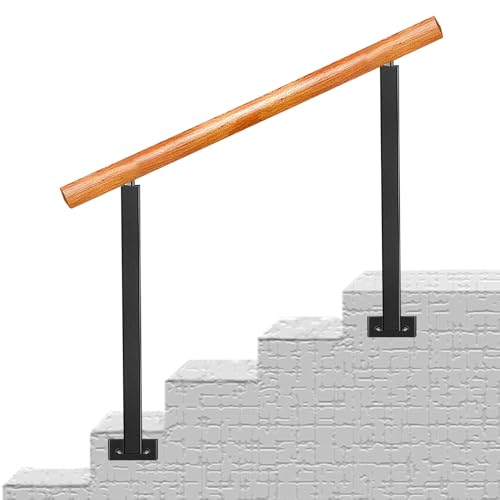 Rampe D'escalier Extérieure, Rampe Escalier Extérieure Réglable, Main Courante pour Escalier Extérieur en Fonte + Garde-Corps en Bois Massif pour 1 à 3 Marches Mains Courantes pour Marches Intérieures