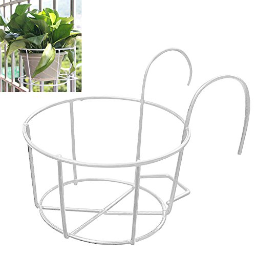Mishiner Ronde Métal Suspendus Plantes Fleur Pot Titulaire Balcon Flowerpot Titulaire pour Maison Garde-corps De Jardin (Blanc, Diamètre: 20cm)