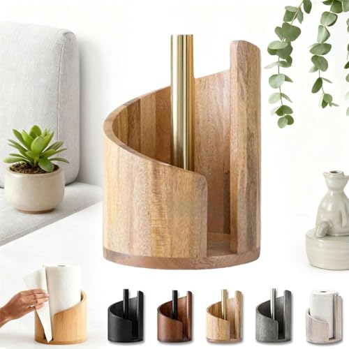 Mountain Porte-rouleau d'essuie-tout en bois avec base en bois de manguier et support en fer, design autonome à une main, s'adapte aux rouleaux Jumbo pour cuisine, salle de bain et garde-manger (bois