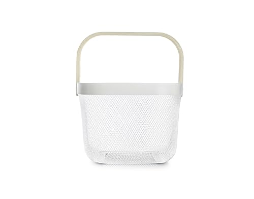 iDesign panier métal avec poignées, panier de rangement avec ouverture frontale, boîte rangement cuisine garde-manger en métal et bois d'acacia, blanc et couleur nature