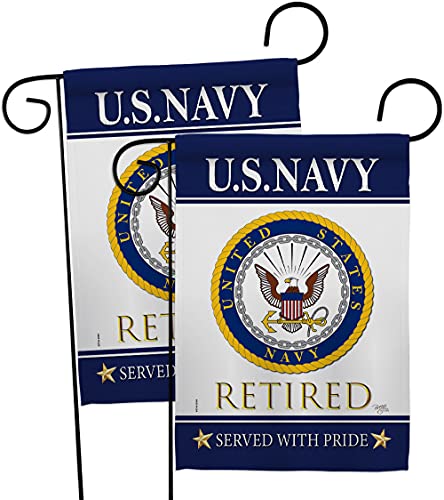 US Navy Retired Garden Flag - 2pcs Pack Armed Forces USN Seabee United State American Military Veteran Retire Official - House Decoration Banner Small Yard Gift Double-Sided Made In USA 13 X 18.5