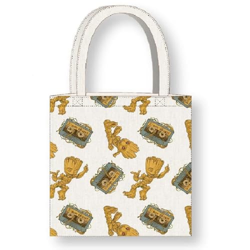 Cerdà Marvel Les Gardiens de la Galaxie Sac Tote Bag à longues poignées - 36 x 39 cm - Polyester et coton - Motif Cassette Groot - Blanc
