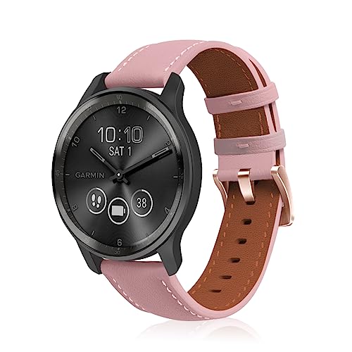 20mm Bracelet en Cuir pour Garmin Vivoactive 5 Bracelet, Bracelet de Remplacement en Cuir Véritable Bande pour Femme Homme (Rose)