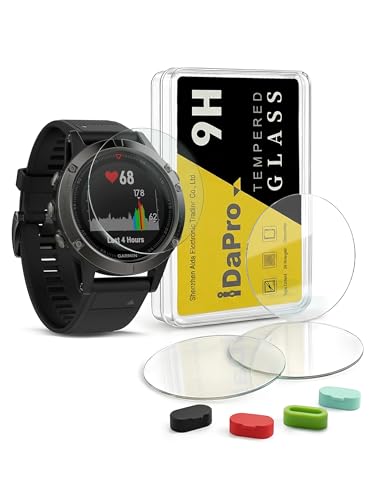 iDaPro [4Pcs Protection d'Ecran pour Garmin fenix 5S+[4Pcs] Bouchons anti-poussière silicone,Verre Trempé,Dureté 9H,Anti-rayure,Sans Bulle,Anti-empreinte,Installation Facile