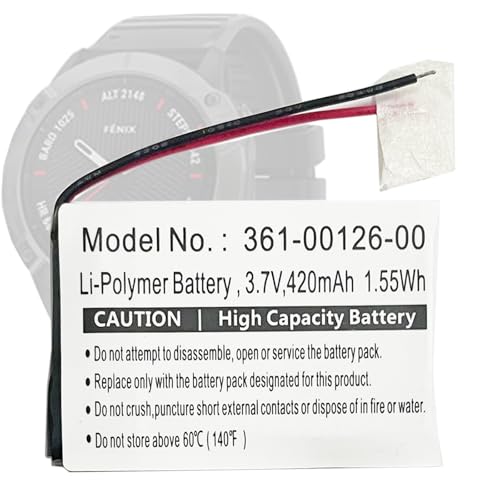 CELLONIC, Batterie pour Montre Intelligente et Bracelet de Fitness Compatible avec Garmin Fenix 6X Pro, Fenix 6X, Fenix 6X Pro Solar (400mAh, 3.7V) Batterie de Remplacement 361-00126-00