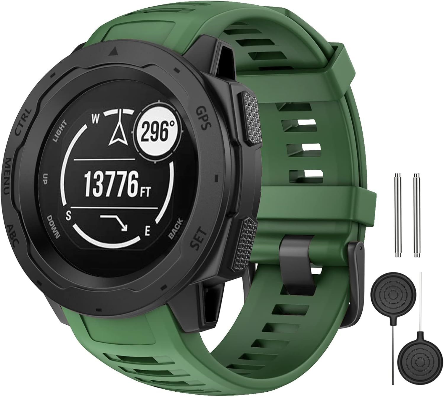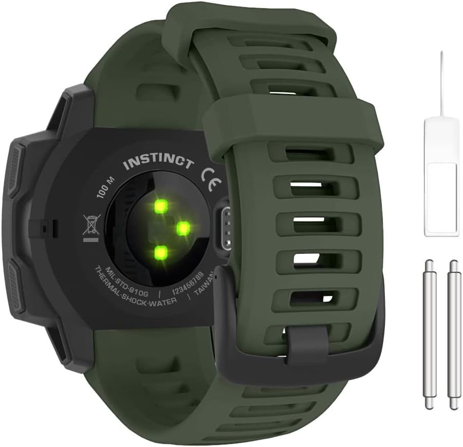 Laffav Bracelet compatible avec Garmin Instinct/Instinct 2, 22 mm en silicone souple - Bracelet de rechange pour Garmin Instinct/Garmin Instinct 2/Solar/Tactical avec outils adaptateurs, vert armée