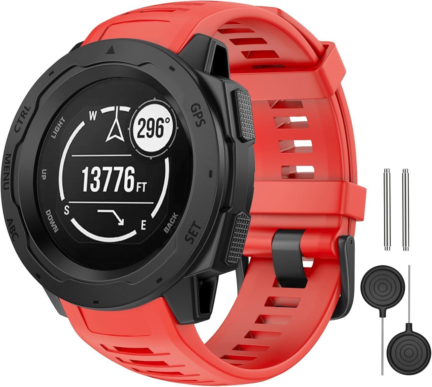 MoKo Bracelet Compatible avec Garmin Instinct/Instinct Solar/Tactical/Instinct 2 Montre GPS, 22mm Bracelet de Remplacement en Silicone Souple, Rouge Feu