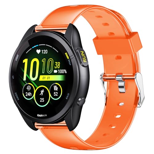 ANBEST Bracelet 22mm pour Garmin Vivoactive 4/Forerunner 255/Venu 2, Silicone Transparent Bracelet de Remplacement pour Forerunner 265/Venu 3/Gear S3/Huawei Watch GT Bracelet, Orange