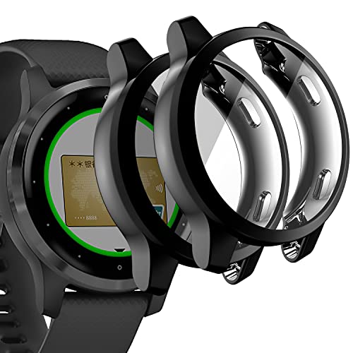 ToVioc [2 Pièces] Coque avec Protecteur d'écran Compatible avec Garmin Venu 2, [TPU Flexible Coque] [Anti-Rayures] Shell pour Garmin Vivoactive 4 - Noir & Transparent
