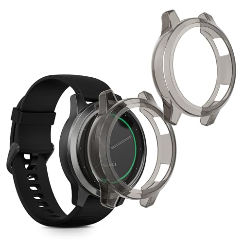 kwmobile Coque Compatible avec Garmin Vivoactive 4 (45 mm) Coque - 2X Étui Cadre écran en Silicone pour Fitness Tracker - Noir-Transparent