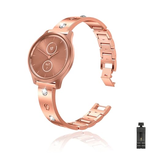Métal bracelet pour Garmin Vivomove Sport/Luxe/Style/Hr/Trend, Bling Métal Femme Brillant, Remplacement de Strass Diamant Compatible avec Garmin Vivomove Sport (D)