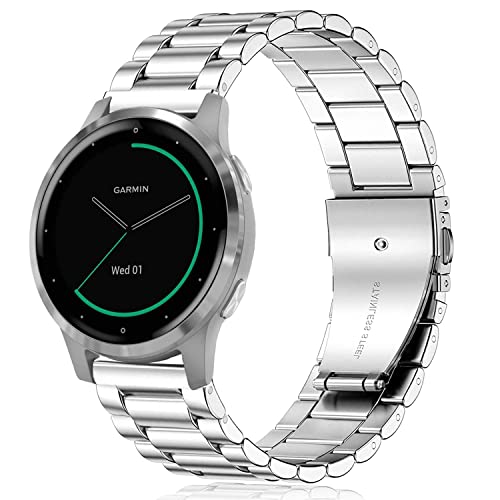 Fullmosa Bracelet de Montre en Acier Inoxydable 18mm Compatible avec Garmin Venu 3S/Venu 2S/Vivoactive 4S/Vivomove 3S/Forerunner 255S/255S Music/Forerunner 265S/move 3S Argenté pour Homme/Femme