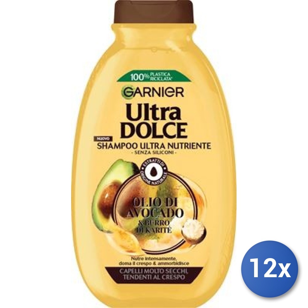 Lot de 12 - Garnier Ultra Doux Pure Huile dAvocat & Beurre de Karité Shampooing Nourrissant 300ml - Homme & Femme