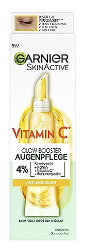 GARNIER Skin Active - Soin Yeux Booster D'Éclat - Réduit Les Cernes & Signes De Fatigue - Niacinamide, Caféine, Vitamine C, Poudre De Banane - Vegan & Cruelty Free - Tous Types de Peaux - 15 ml