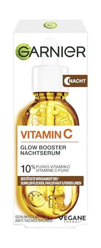 Garnier SkinActive Sérum de nuit à la vitamine C contre les taches sombres, pour toutes les peaux, sérum pour le visage avec niacinamide et acide salicylique, sérum anti-taches foncées, 1 x 30 ml