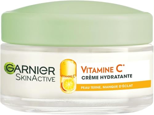 GARNIER Skin Active - Crème Hydratante Bio - Hydratation & Éclat - Nourrit, Lisse & Illumine Le Teint - Vitamine C & Agrumes - Vegan & Cruelty Free - Peaux Ternes En Manque D'Éclat - 50 ml